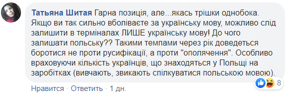 "Хорошая позиция, но... какая-то немного однобокая. Если вы так сильно ратуете за украинский язык, может следует оставить в терминалах только украинский язык!....", - не понимают пользователи.