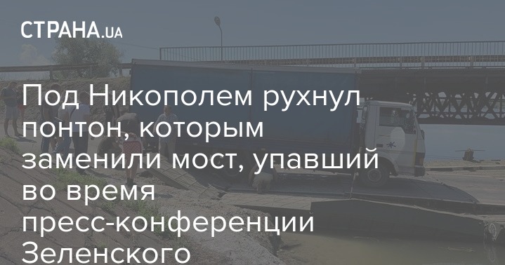 Под Никополем повреждена понтонная переправа, заменившая мост, который рухнул под тяжестью фуры прямо во время пресс-конференции президента Владимира Зеленского. На этот раз причиной инцидента тоже стал грузовик, под колесами которого обрушилась крайняя секция переправы. Об этом сообщается на странице OrdzhoCity в соцсети.