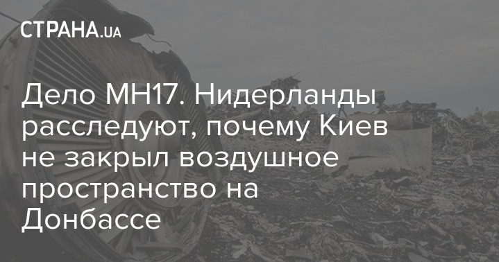 Нидерланды согласились расследовать обстоятельства, исходя из которых Украина не закрыла воздушное пространство для гражданских авиаперевозок в зоне вооруженного конфликта на Донбассе, где в 2014 году потерпел крушение самолет Boeing MH17.