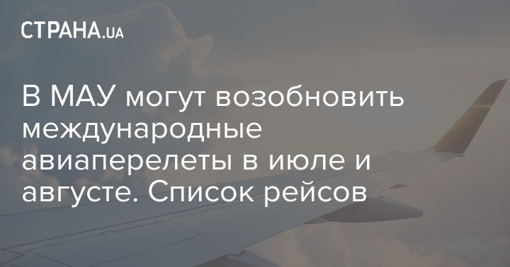 Авиакомпания "МАУ" планирует возобновить международное авиасообщение в Украине. Часть рейсов (в 9 городов) назначена на июль, часть (в 16 городов) - на август. Об этом говорится в сообщении пресс-службы авиакомпании.