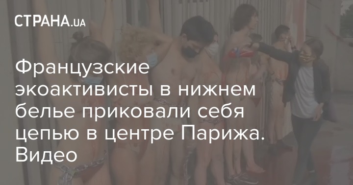 Французские экоактивисты в нижнем белье приковали себя цепью в центре Парижа. Видео