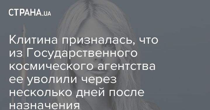 Советницу главы Государственного космического агентства Украины Александру Клитину, назначенную на эту должность 22 июня, уволили.