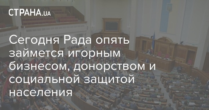 Сегодня Рада опять займется игорным бизнесом, донорством и социальной защитой населения