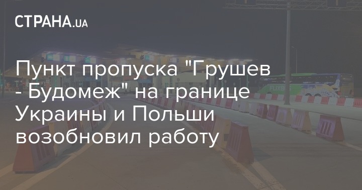 "На границе с Польшей возобновлена работа пункта пропуска "Грушев-Будомеж". Пропуск легкового и грузового транспорта возобновлен сегодня с 01:00", - говорится в сообщении.