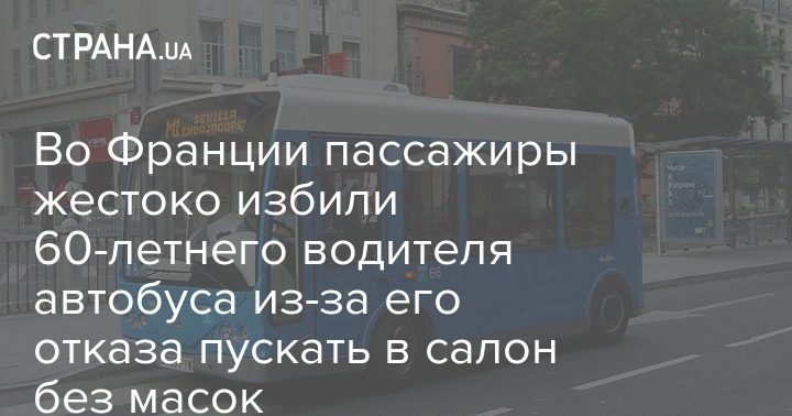 Во французском городе Байонна в воскресенье, 5 июля, четверо пассажиров напали на водителя автобуса потому, что тот не хотел пускать их в салон без медицинской маски. Теперь мужчина в тяжелом состоянии находится в больнице.