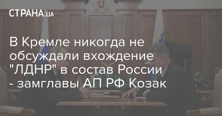 Вопрос вхождения так называемых "ДНР" и "ЛНР" в состав Российской Федерации никогда не обсуждался на государственном уровне. Об этом в интервью ТАСС заявил заместитель руководителя администрации президента РФ Дмитрий Козак.
