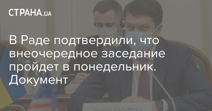 "В связи с требованием президента Украины о созыве внеочередного пленарного заседания Верховной Рады… созвать внеочередное пленарное заседание на 14:00 13 июля 2020 года", – сказано в документе.