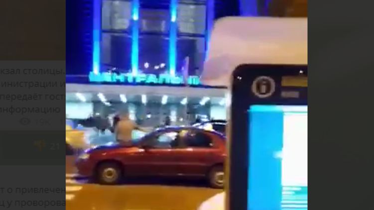 В Киеве возле Центрального железнодорожного вокзала табло остановки внезапно начало транслировать горячее видео вместо графика движения общественного транспорта.
