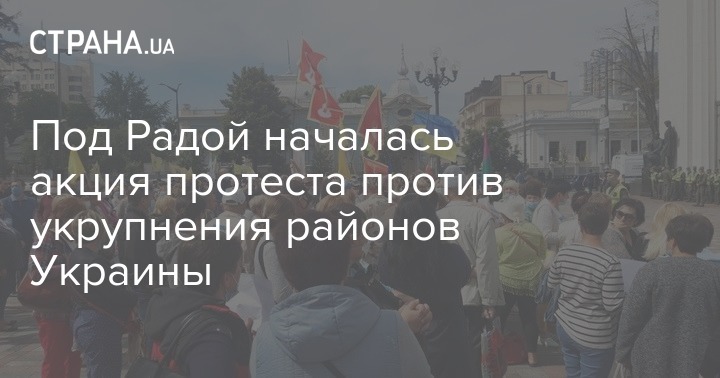 Сегодня, 15 июля, представители разных регионов Украины вышли на акцию протеста под стены Верховной Рады. Митингующие выступают против укрупнения районов и требуют снять с повестки дня постановление №3560 о создании и ликвидации районов в Украине, которое было одобрено Комитетом парламента по вопросам организации государственной власти, местного самоуправления, регионального развития и градостроительства и рекомендовано к принятию в сессионном зале.