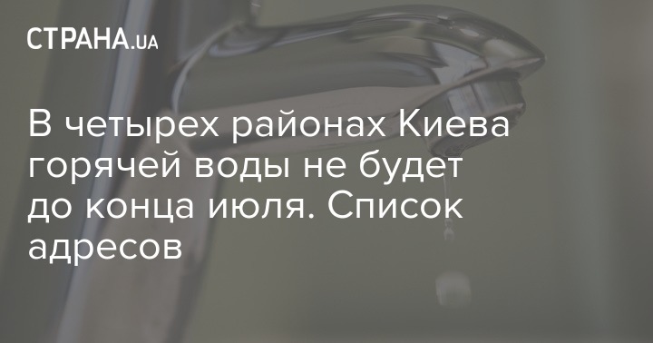 Кроме того, до 20 июля горячее водоснабжение будет отсутствовать в Оболонском, Подольском и Соломенском районах.