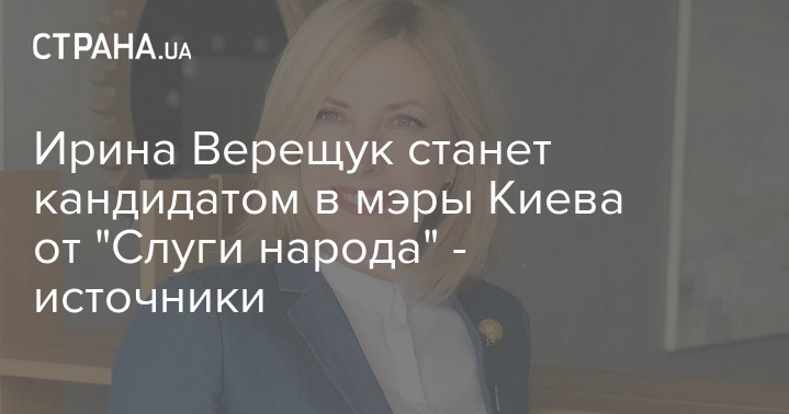 Наиболее вероятным кандидатом на выдвижение в мэры Киева от партии "Слуга народа" является Ирина Верещук. Об этом "Стране" сообщили источники из политической силы.