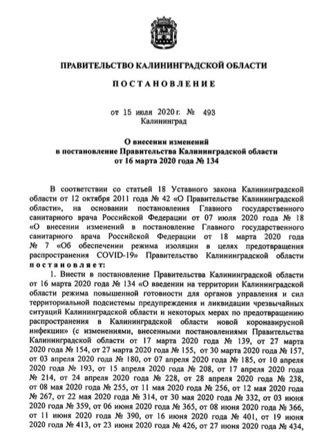Например, постановление главного санврача РФ ввел в действие губернатор приграничной Калининградской области Антон Алиханов. Он подписал документ вчера, 15 июля (опубликован ниже).