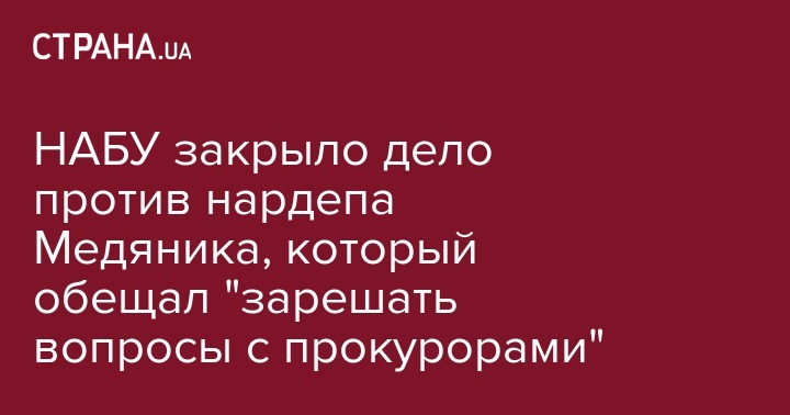 Национальное антикоррупционное бюро Украины закрыло дело против народного депутата Вячеслав Медяник, который стал участником коррупционного скандала после публикации "Страной" его переписки в Раде.
