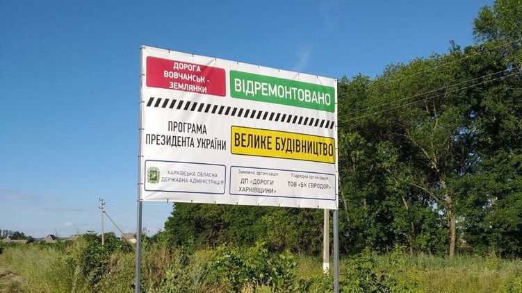 В Волчанском районе Харьковской области установили билборд, на котором указано, что ремонт дороги Волчанск-Землянки по президентской программе "Большое строительство" завершен. Однако, как сообщают местные жители, эта информация не соответствует действительности.