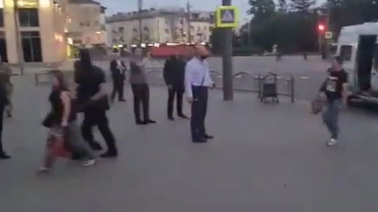 Заложники уходят прочь от автобуса. Скриншот из видео