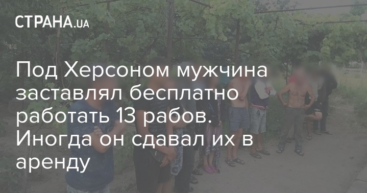 "Житель Скадовского района незаконно удерживал на территории своего домовладения 13 заробитчан из центральных и западных областей Украины. Людей заставляли по 15 часов бесплатно работать на полях местных фермеров", - говорится в сообщении.