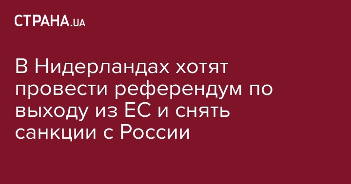 В Нидерландах хотят провести референдум по выходу из ЕС и снять санкции с России