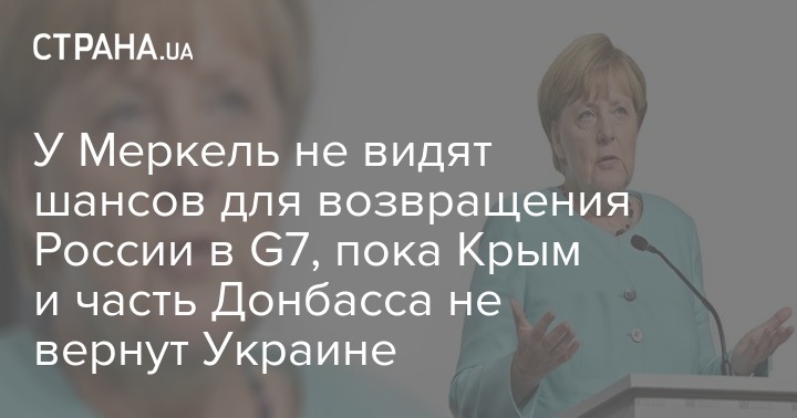 Кабинет канцлера Ангелы Меркель ясно обозначил свою позицию на предмет возможного возвращения России в мировой клуб стран Большой семерки (G7). До тех пор, пока Крым не будет возвращен Украине и не прекратится агрессивная кампания на Донбассе - Кремлю закрыт путь обратно в G7.