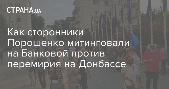 В понедельник, 27 июля, у Офиса президента сторонники Петра Порошенко митинговали против перемирия на Донбассе, которое объявлено с сегодняшнего дня.