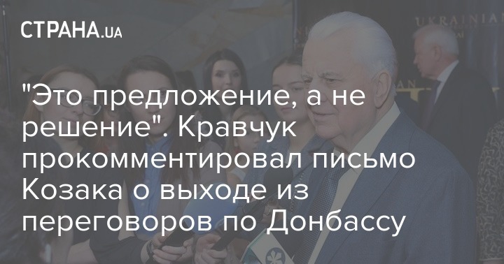 Первый президент Украины Леонид Кравчук, который вместо Кучмы будет представлять Украину в Трехсторонней контактной группе по Донбассу, считает, что письмо замглавы администрации президента РФ Дмитрия Козака о выходе из переговоров с Андреем Ермаком - это предложение, но не решение.