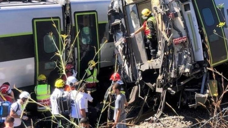 Высокоскоростной поезд потерпел крушение в Португалии. Фото: Twitter