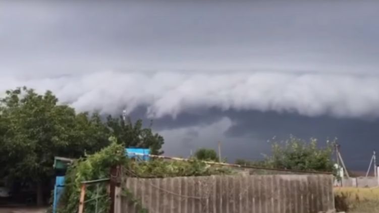 В Кирилловке Запорожской области местные жители и туристы стали очевидцами редкого метеорологического явления. В небе над Азовским морем образовались валовые облака, или как их еще называют - грозовой воротник.