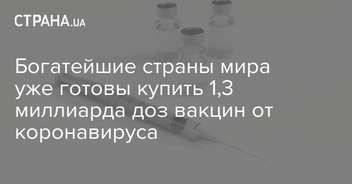 На сегодняшний день богатейшие страны мира уже подписали соглашение о покупке 1,3 млрд доз вакцин от коронавируса. Среди них США, Великобритания, Япония и страны Евросоюза.