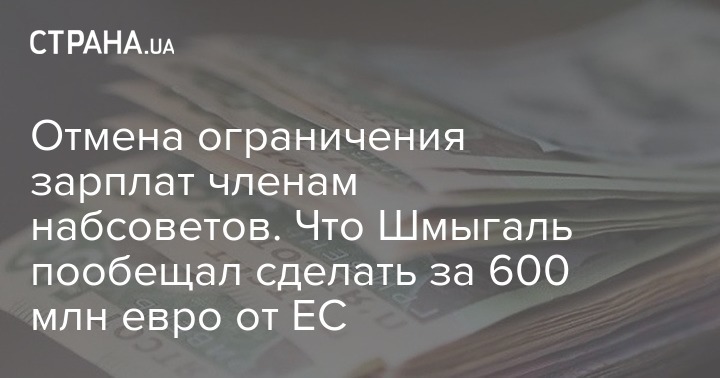 Премьер-министр Украины Денис Шмыгаль пообещал Евросоюзу в обмен на транш в размере 600 млн евро снять ограничения с зарплат членов наблюдательных советов. Кроме того, есть еще ряд требований, которые связаны с проведением реформ.