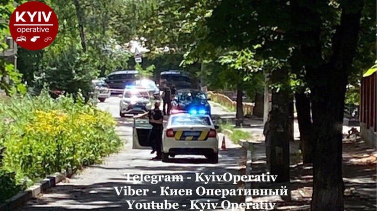 Полиция перекрыла Старокиевскую улицу из-за возможного минирования авто. Фото: Telegram/Киев Оперативный