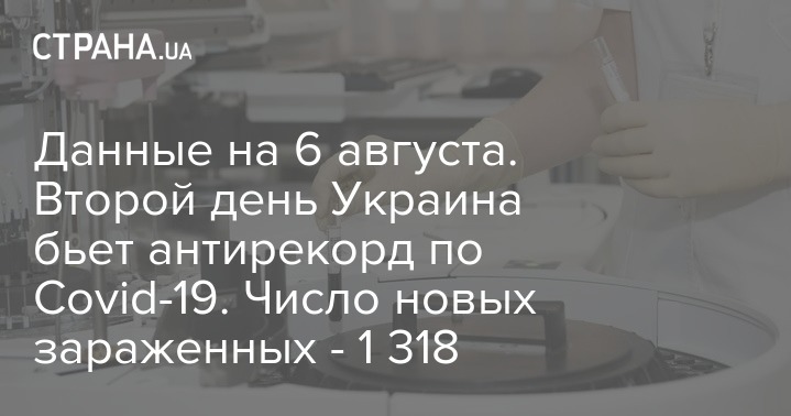 Данные на 6 августа. Второй день Украина бьет антирекорд по Сovid-19. Число новых зараженных - 1 318