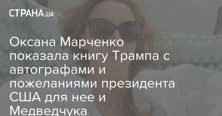Известная украинская телеведущая, супруга главы политсовета "Оппозиционной платформы За жизнь" Виктора Медведчука Оксана Марченко поблагодарила президента США Дональда Трампа и его жену Меланию за пожелания, оставленные ими в книге Трампа "Искусство заключать сделки".