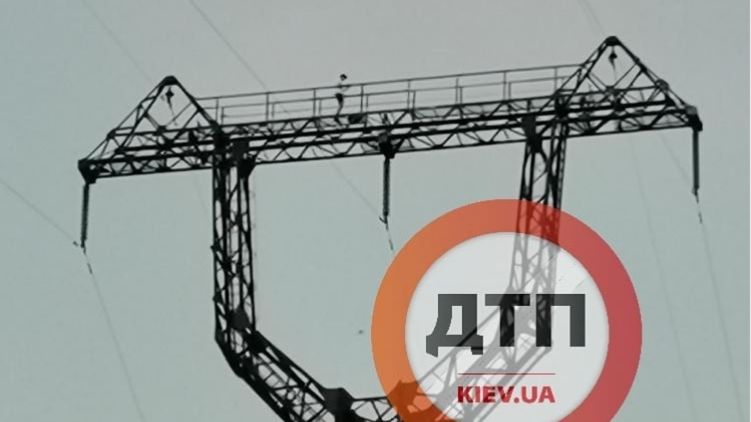 Под Киевом парень залез на электроопору, чтобы запустить квадрокоптер. Фото