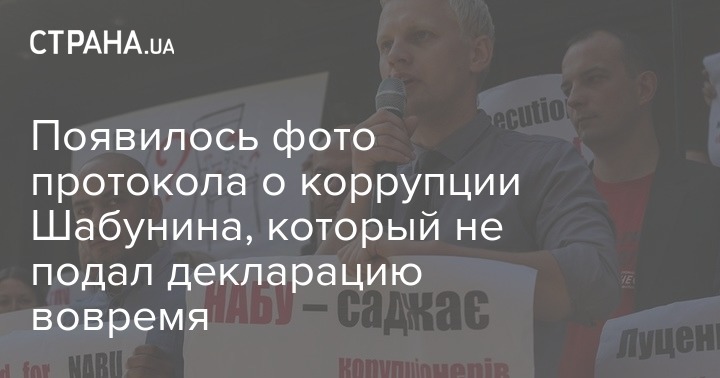 В распоряжение "Страны" попал протокол о коррупции, который был составлен на председателя правления общественной организации "Центр противодействия коррупции" Виталия Шабунина. О составлении этого протокола вчера сообщил известный юрист Андрей Портнов. Шабунин подал декларацию о доходах с опозданием и теперь будет отвечать за административное правонарушение.