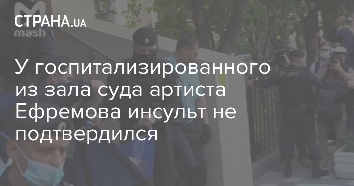 У госпитализированного во вторник, 11 августа, из зала суда в бессознательном состоянии артиста Михаила Ефремова, по предварительным данным, инсульт не подтвердился.