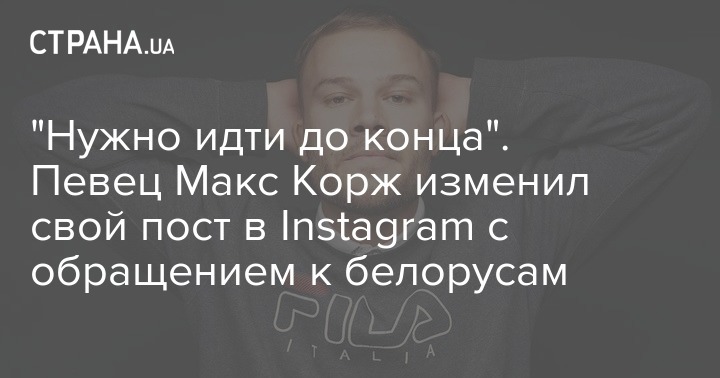 Известный белорусский исполнитель Макс Корж отредактировал свой пост в Instagram, посвященный протестам в республике, которые начались после выборов президента.