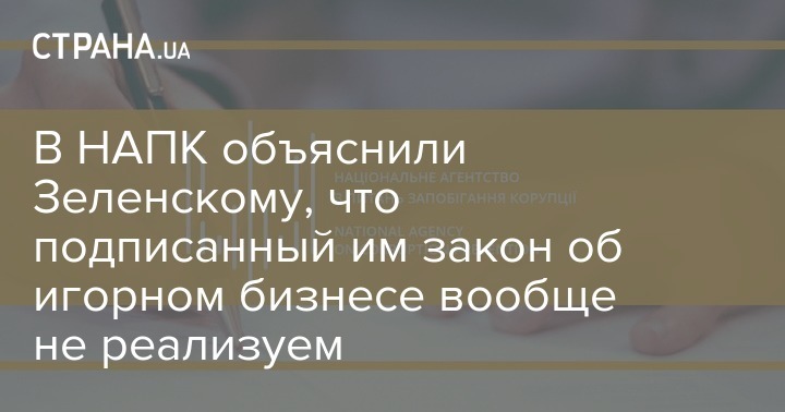 Национальное агентство по предупреждению коррупции (НАПК) направило президенту Украины Владимиру Зеленскому письмо с предостережениями по поводу закона "О государственном регулировании деятельности по организации и проведению азартных игр".