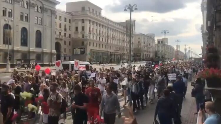 В Минске протестующие перекрыли центральный проспект и движутся к Дому правительства. Фото: Спутник