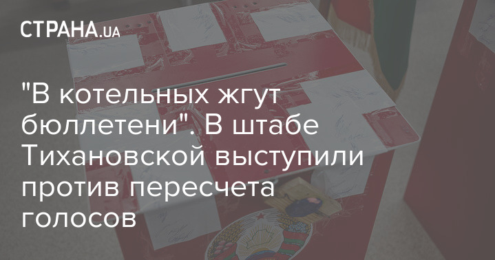 "В котельных жгут бюллетени". В штабе Тихановской выступили против пересчета голосов