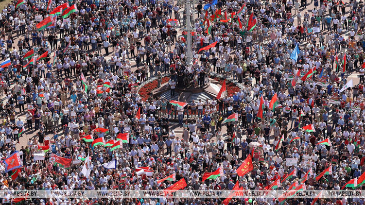 В Минске на акции сторонников действующего президента страны Александра Лукашенко было 70 тысяч человек. На митинг у дома правительства к началу пришли 65 тысяч граждан, а к концу митинга их стало больше.