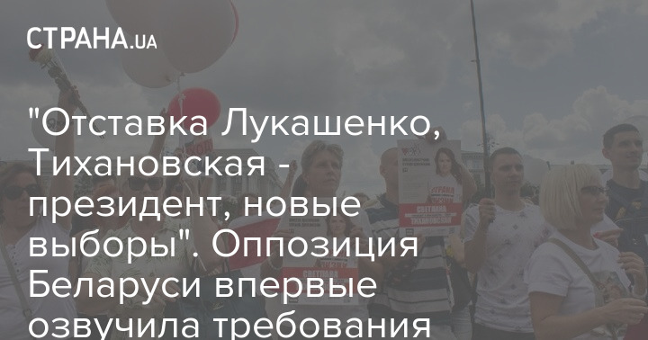 В Беларуси на митинге противников Лукашенко оппозиция впервые за неделю протестов озвучила свои требования. Первое требование - отставка Лукашенко и признание по результатам выборов президентом Тихановской.