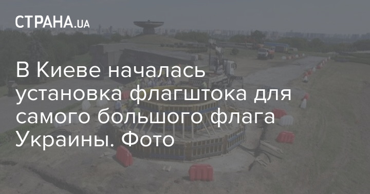 В Киеве начали устанавливать флагшток, на который установят самый большой флаг страны. Сооружение возводится на территории Мемориального комплекса "Национальный музей истории Украины во Второй мировой войне" около "Родины-матери".