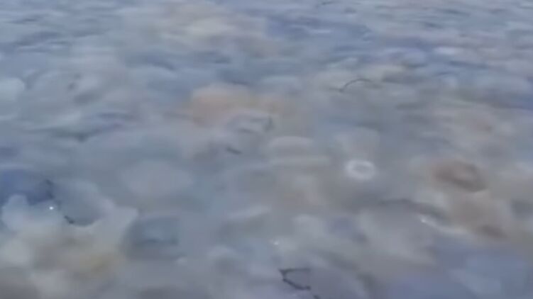 В Бердянске отдыхающие засняли плавающий остров из медуз. Видео