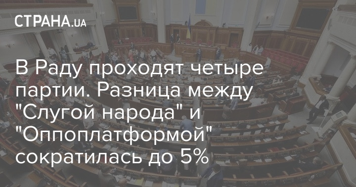 Если бы выборы в Верховную Раду состоялись в воскресенье, 23 августа, то в парламент бы прошли партии "Слуга народа", рейтинг которой падает, "Оппозиционная платформа - За жизнь", "Европейская солидарность" и ВО "Батькивщина". При этом разница между "Слугой народа" и ОПЗЖ сократилась до чуть более 5% за счет падения рейтинга партии президента и роста рейтинга "Оппоплатформы".