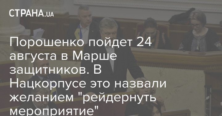 Порошенко пойдет 24 августа в Марше защитников. В Нацкорпусе это назвали желанием "рейдернуть мероприятие"
