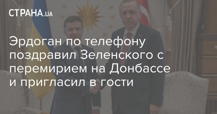 Президент Украины Владимир Зеленский провел телефонный разговор с президентом Турции Реджепом Тайипом Эрдоганом. Турецкий коллега поздравил Зеленского с 29-й годовщиной независимости. Также Эрдоган поздравил Зеленского с установлением режима прекращения огня на Донбассе.