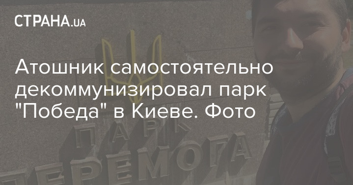 Участник боевых действий на Донбассе, житель Киева Алексей Гончарук самостоятельно "декоммунизировал" парк "Победа". Там он заменил советскую символику на самодельный государственный герб Украины.
