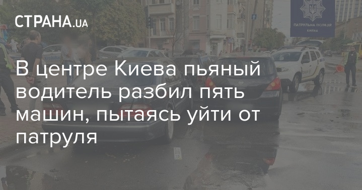 Вечером в четверг, 27 августа, в центре Киева пьяный водитель устроил множественное ДТП. Он пытался скрыться от патрульных и разбил пять автомобилей на улице Антоновича.