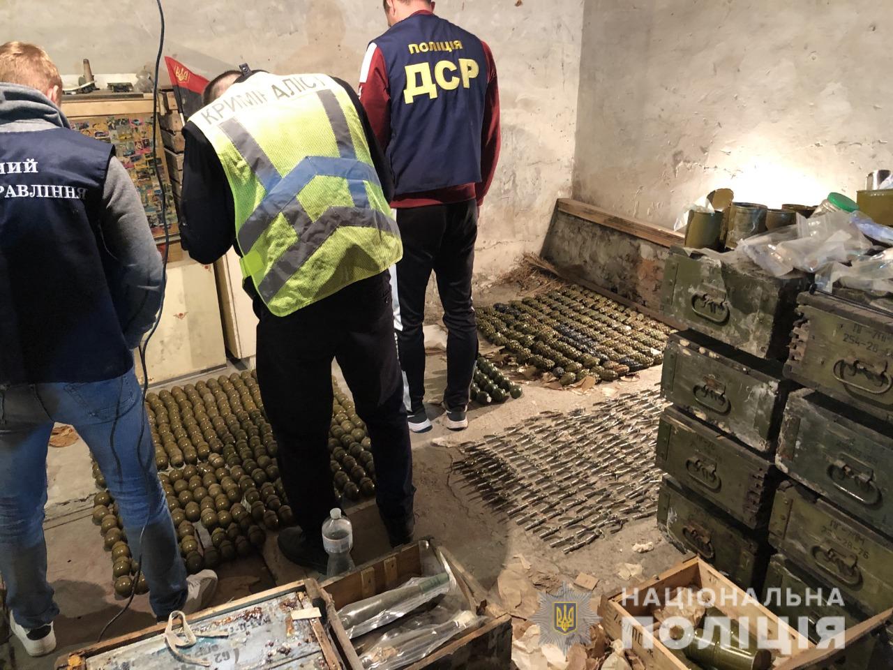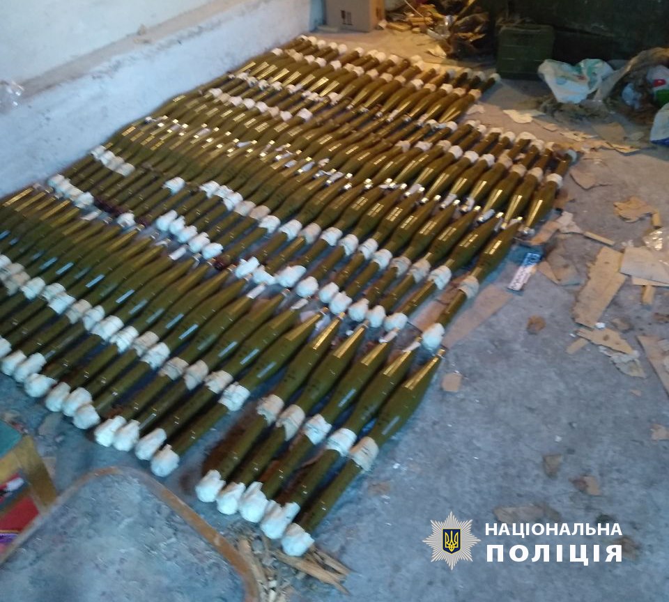 "В частности, в подвальном помещении гаража изъяли 472 корпуса ручных гранат различного типа, 765 запалов типа УЗРГМ и УЗИ, более 660 гранатометных выстрелов различного типа, 122 пусковых ракетных двигателя, 49 реактивных противотанковых гранат различного типа, 66 ручных дымовых гранат, 20 сигнальных, осветительных, минометных и противопехотных мин, выстрел с осколочно-фугасным снарядом. Кроме того, среди изъятого 55 ящиков с патронами разного калибра - почти 62 тысчи патронов, а также тротиловые шашки - общий вес 5 кг, взрывные устройства, другие боеприпасы и вспомогательные военные средства", - говорится в сообщении.