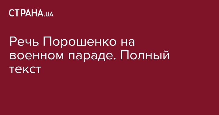 "Страна" публикует полный текст речи президента на военном параде в честь Дня независимости.