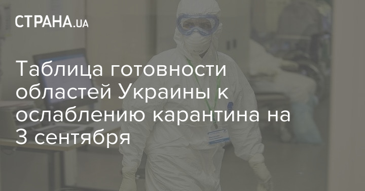 По состоянию на 3 сентября в Украине не готовы к ослаблению карантина большинство регионов страны. Так, по данным Министерства здравоохранения, Киев и 16 областей не соответствуют критериям для смягчения карантина.